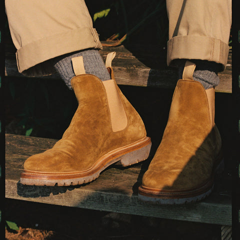We have selected a Tobacco full-grain calfskin suede from Italy's Conceria Opera for the Outsider II. Opera's calf skin suede is known for its rich texture, durability, and exceptional resilience to diverse weather conditions.